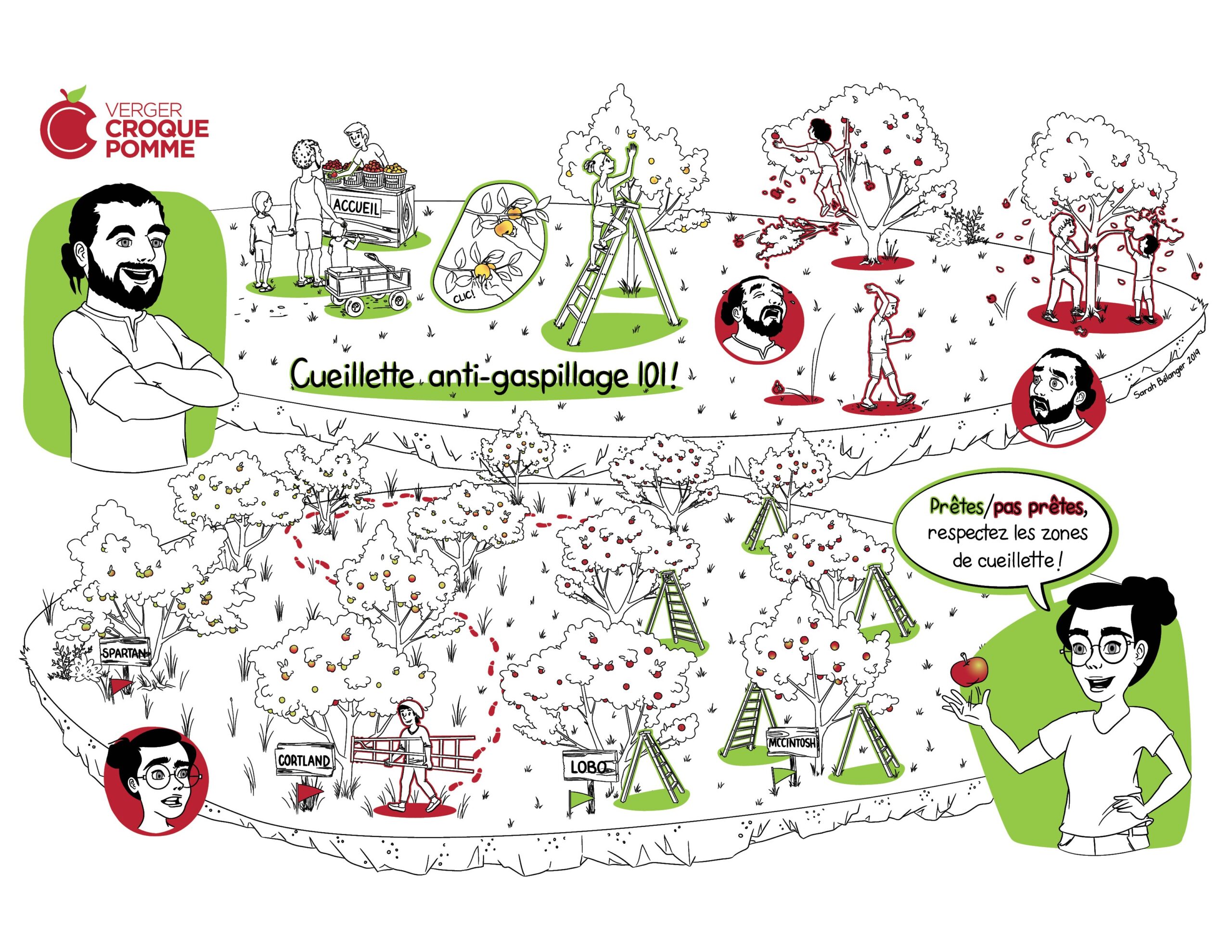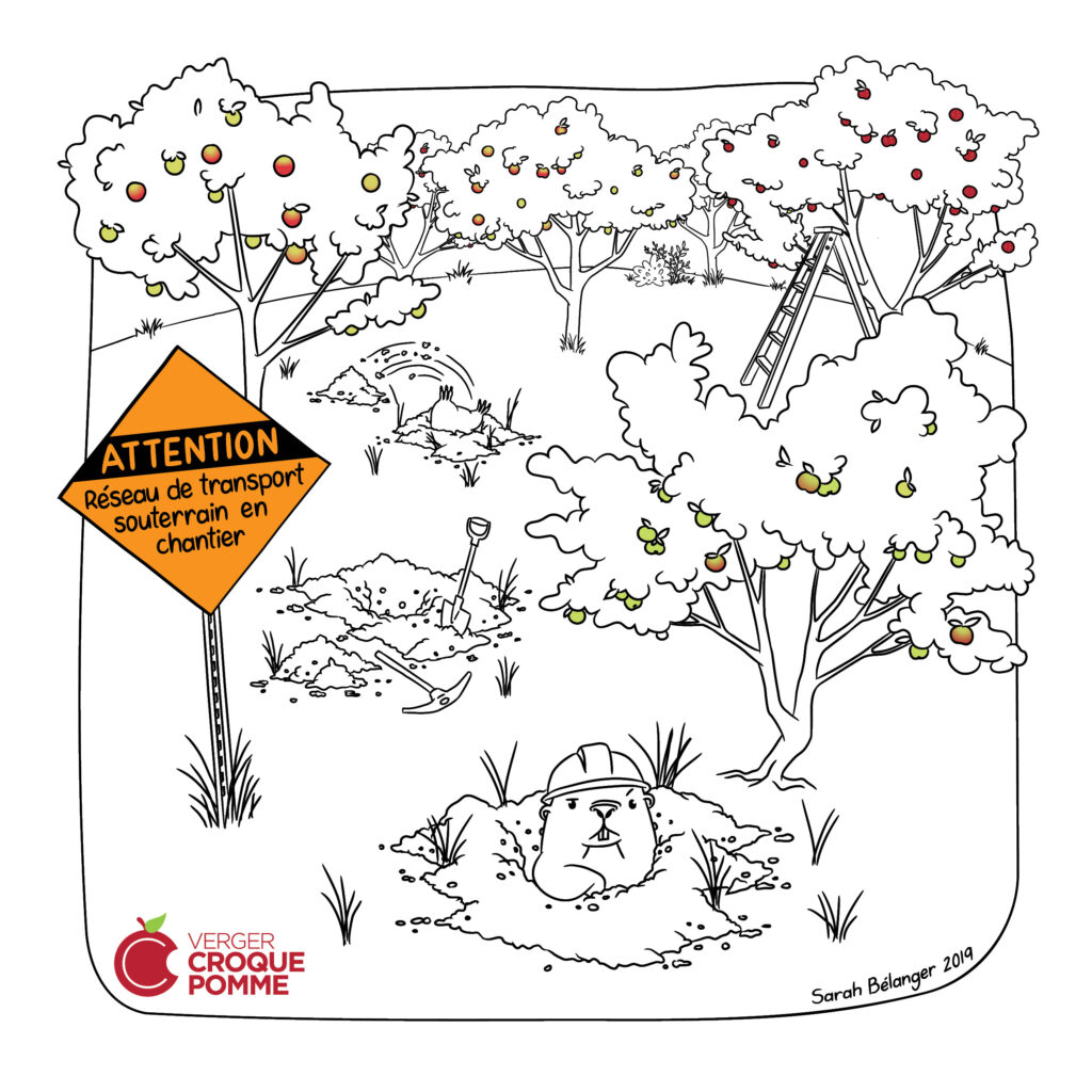Pour des raisons sanitaires, les chiens sont malheureusement interdits sur le verger. Ils sont admis dans l’aire de stationnement gazonné, en laisse. |
